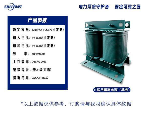 單相IT醫用隔離變壓器是醫療隔離電源系統(IT系統)的核心組件,專為手術室、ICU、診斷實驗室等高安全要求的醫療環境設計。其通過??單相不接地系統??實現供電回路與地的完全電氣隔離,有效阻斷漏電流及接地故障風險,確保患者和醫療設備的安全。